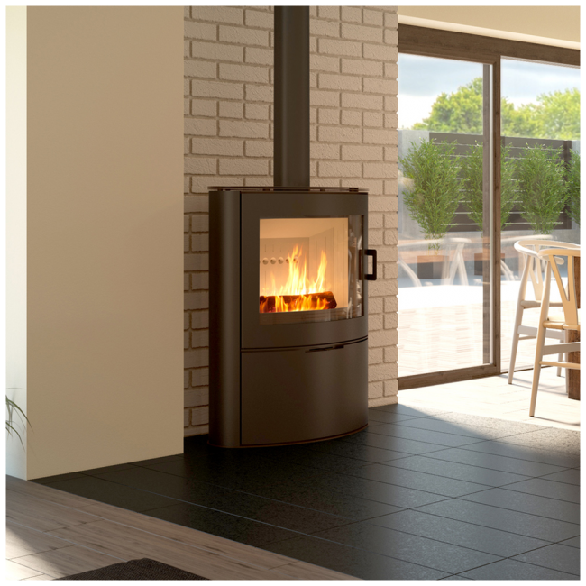 Koza AB o cylindrycznym, nowoczesnym kształcie to świetne rozwiązanie dla osób, które pragną prawdziwego ciepła domowego ogniska, ale nie dysponują dużą przestrzenią.