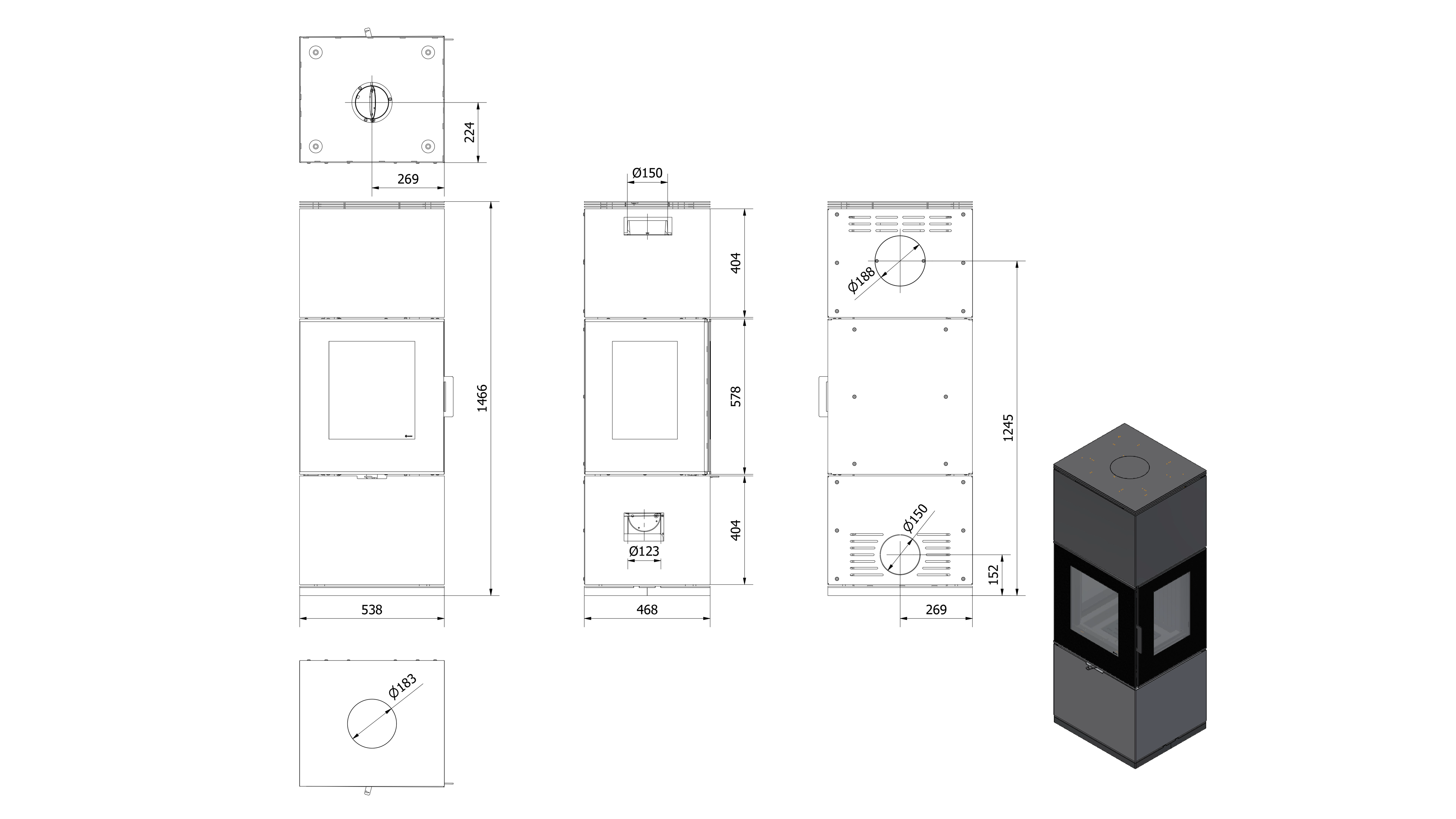 INGA to nowoczesny piec na drewno o prostym i eleganckim wykończeniu, z trójstronną wizją ognia. Piec został wzbogacony o czarną stalową rączkę do otwierania drzwi oraz system click-clack do bezpiecznego zamykania komory spalania.
