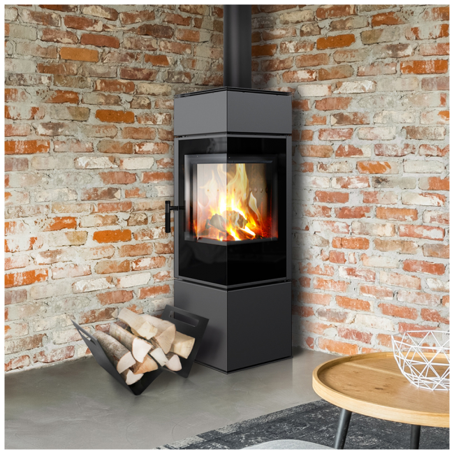 THOR to stalowy piec wolnostojący o ciekawym geometrycznym kształcie prostopadłościanu. Jego prosta forma przyciąga uwagę każdego.