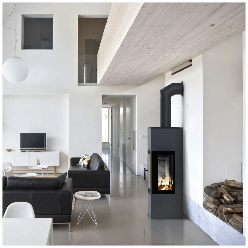 THOR to stalowy piec wolnostojący o ciekawym geometrycznym kształcie prostopadłościanu. Jego prosta forma przyciąga uwagę każdego.