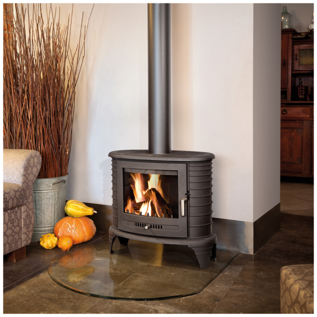 K8 to koza o unikalnym kształcie i modnych zdobieniach. Jej owalna forma i żeliwny korpus z prążkowanym wzorem łączą w jedno nowoczesność z tradycją stosowania żeliwa jako jednego z najlepszych materiałów akumulujących ciepło.