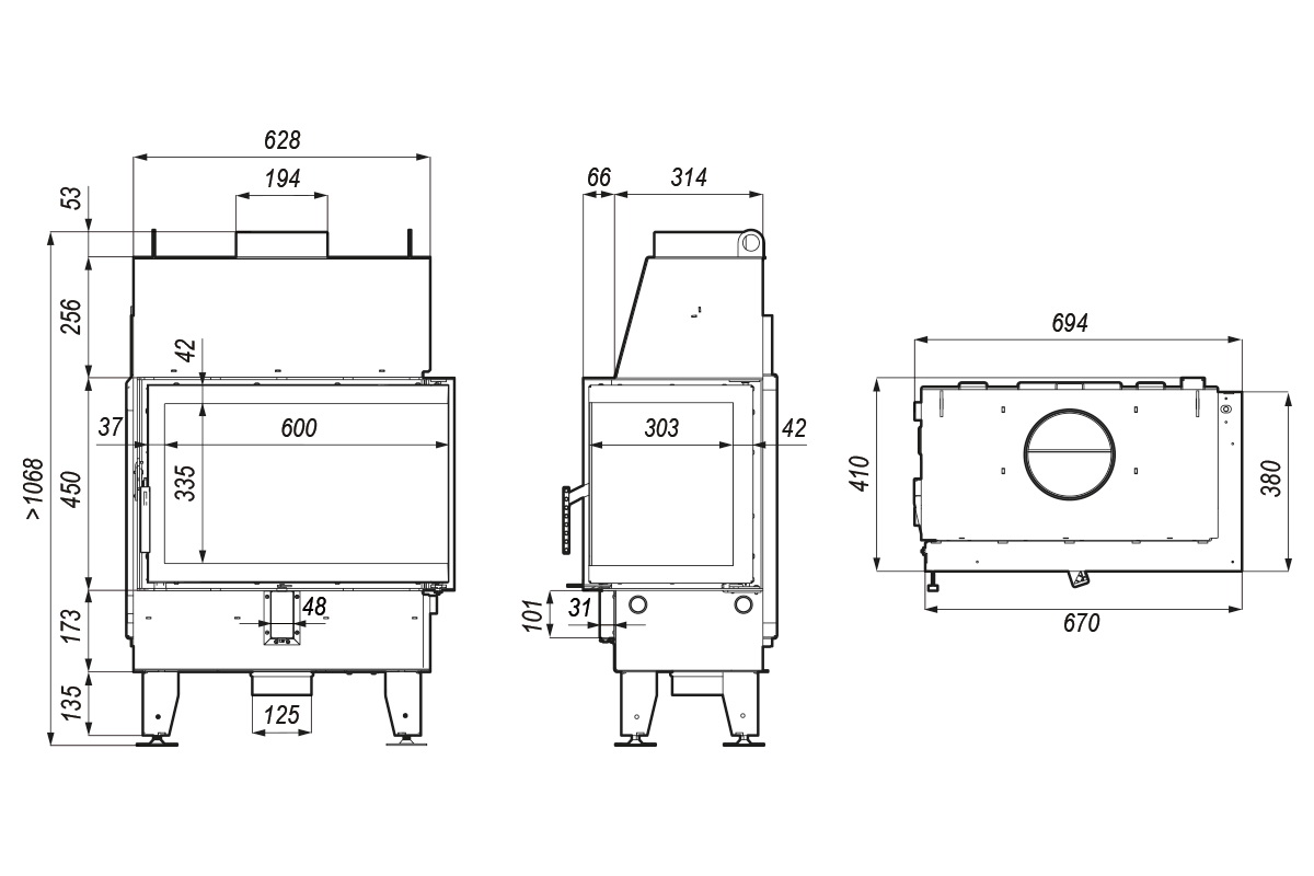 Kominek w standardzie wyposażony w stalowy ruszt, który można w łatwy sposób zamienić na dedykowaną ceramiczną zaślepkę, zmieniając palenisko na bezrusztowe.