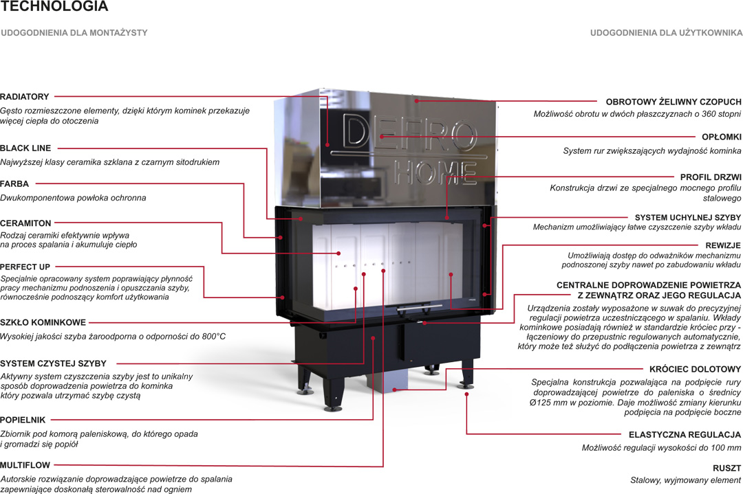 Wkłady kominkowe z serii DEFRO HOME INTRA doskonale sprawdzą się podczas palenia ciągłego i z powodzeniem ogrzeją cały dom. Nowoczesna konstrukcja i szczelne palenisko pozwala, aby się cieszyć jego możliwościami w domach pasywnych oraz z rekuperacją. Autorskie rozwiązania gwarantują oszczędność energii i bezawaryjną obsługę urządzenia.
